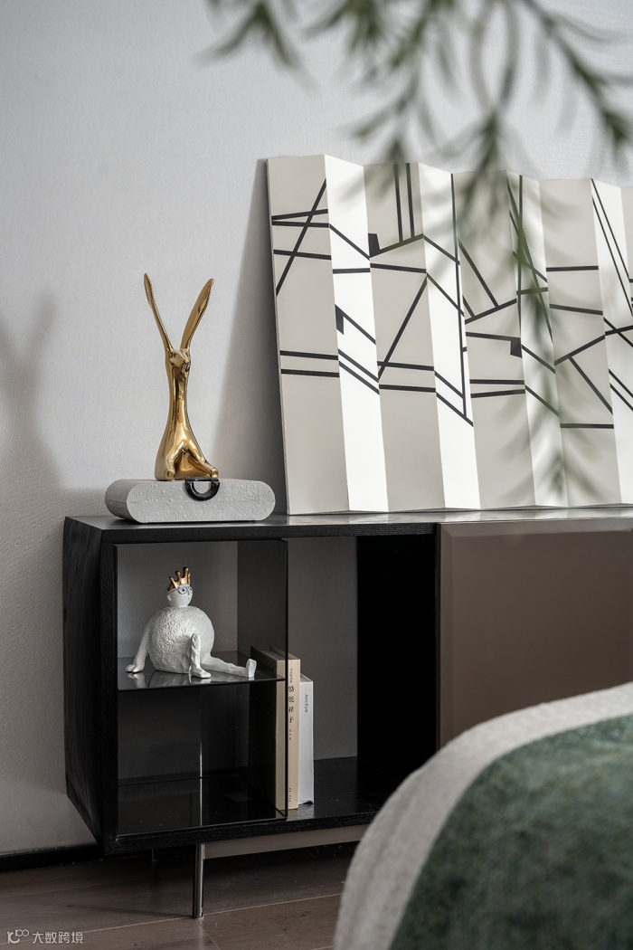 杜松子绿的主基调颜色中,适宜的蜂蜜橘和橄榄浅绿的加注,挚真而不失浪漫,艺术摆件中散发着主人崇尚自然的闲情逸致。