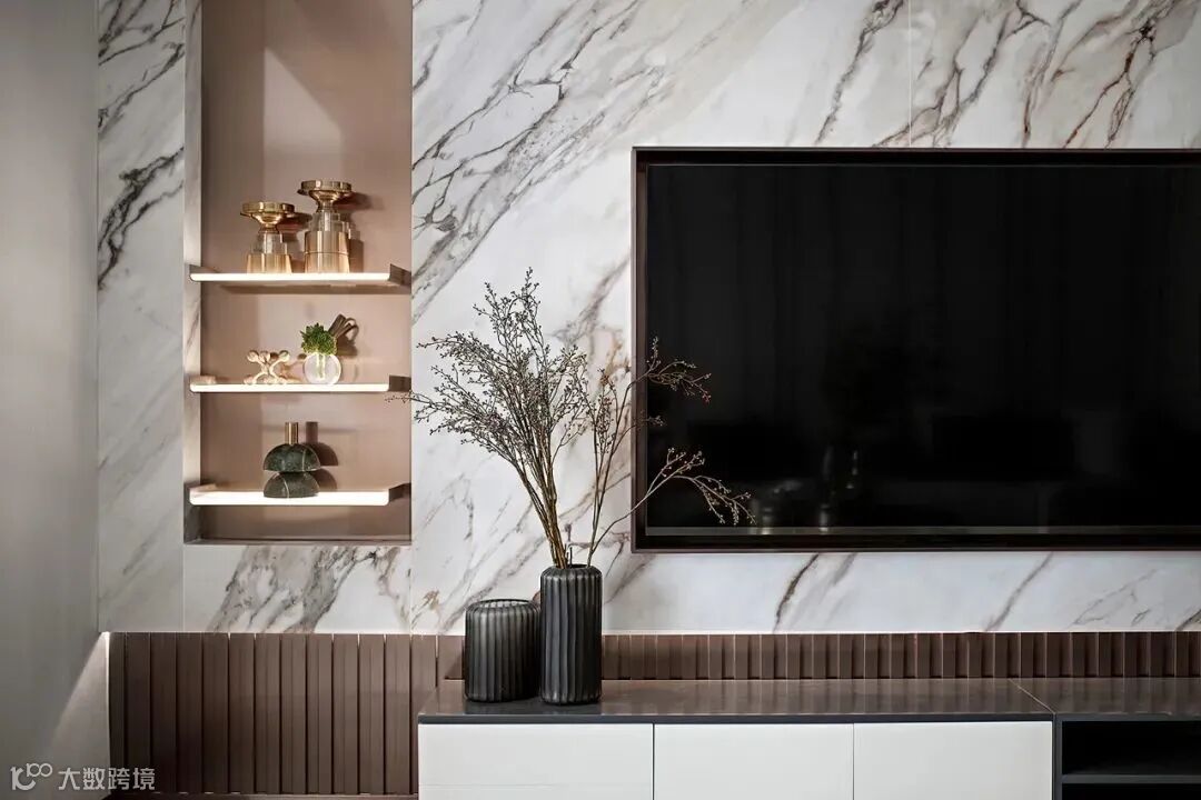 墙面选用大理石去诠释墙体的丰富性,迥别于传统瓷砖的冰冷感,更为斑斓生动。