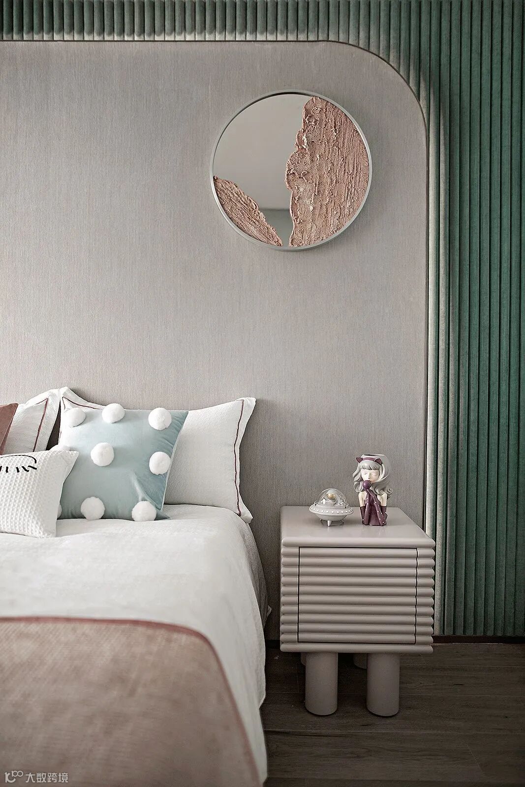 移步换景,随光而行。与其他空间不同的是,儿童房以莫兰迪色为基调,充满着孩子般的童趣与大自然的气息。一抹绿色是跳跃的音符,谱下一片充满光的小天地,传递情景感与情绪交错的空间。