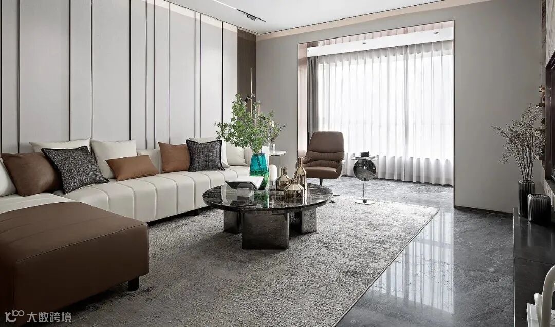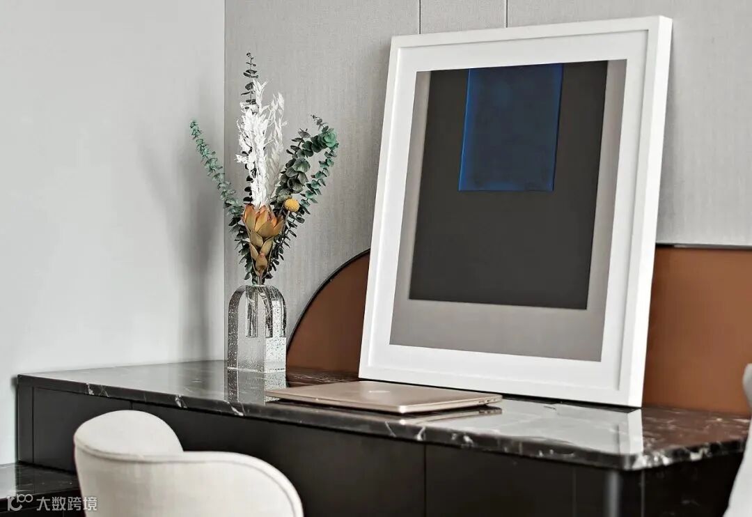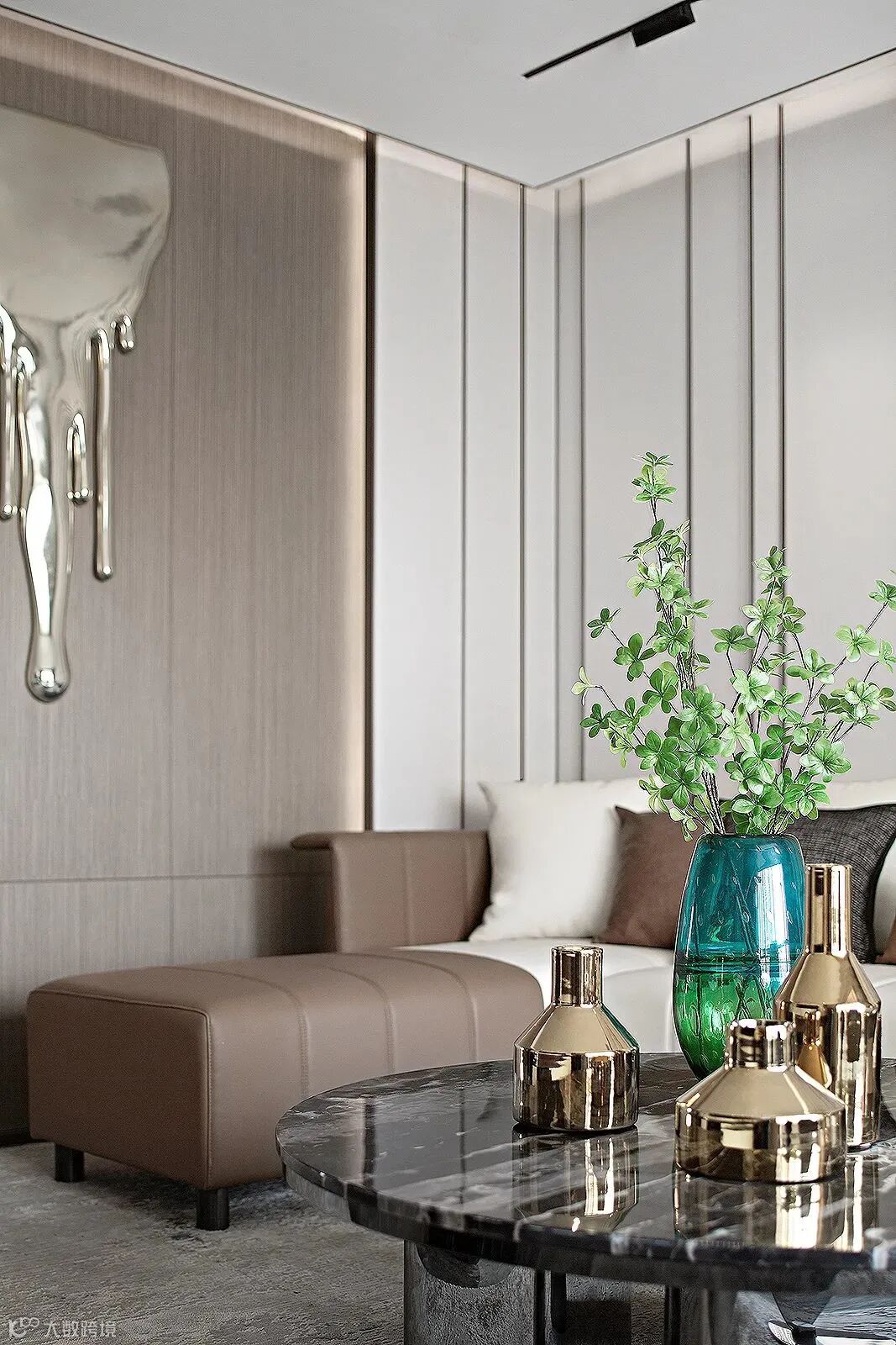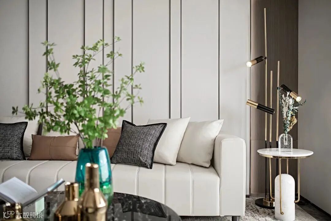 客厅白棕相间的大幅色调营造出视觉上的华丽精致,在不同色彩和若干摆件的点缀下更加别具一格,简单且不张扬的感官体验,有了深入探索的好奇心。