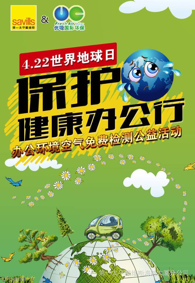 地球是我们生存的家园,每天人们追求新鲜的空气、干净的水和食品的安全,海航大厦务求让各业户拥有一个健康、安全的办公环境,同时答谢大厦业户一直对我们工作的支持与配合,籍4月22日“世界地球日”海航大厦联合香港优吸国际环保科技有限公司开展一次为各业户免费提供办公环境/汽车内环境检测公益活动。