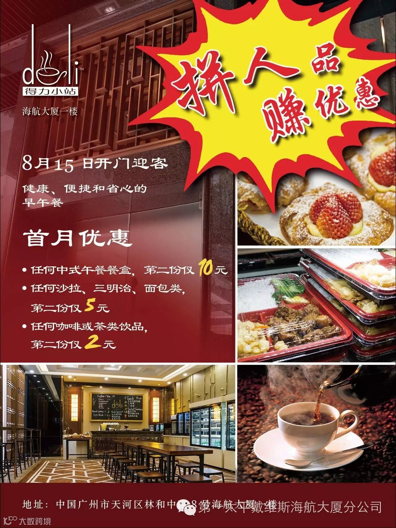 为更方便海航大厦各业户的商务就餐及商务洽谈,威斯汀酒店在大厦首层大堂“得利小站”为海航大厦客户供应商务套餐、咖啡、沙拉等,并将于8月18日正式开业,现试业期间推出更多优惠,欢迎大厦各业户亲临“得利小站”了解更多优惠信息。