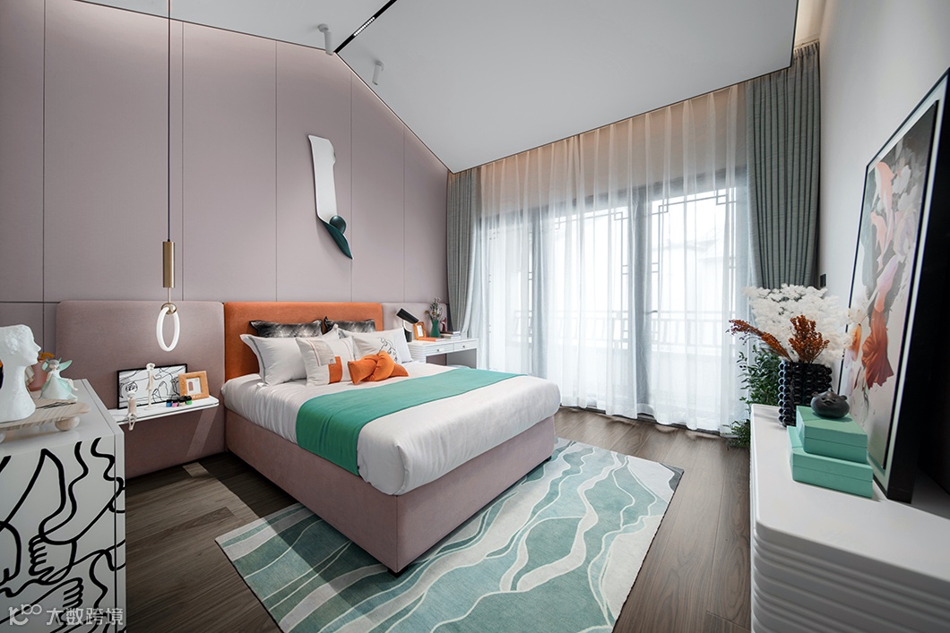 女儿房以粉色为主色调,轻纱薄缦,飘动着少女的浪漫幻想,似涓涓细流在林间萦绕,整个房间充满爱的粉红泡泡,似一首青春的协奏曲,轻快、雀跃而又充满期望……