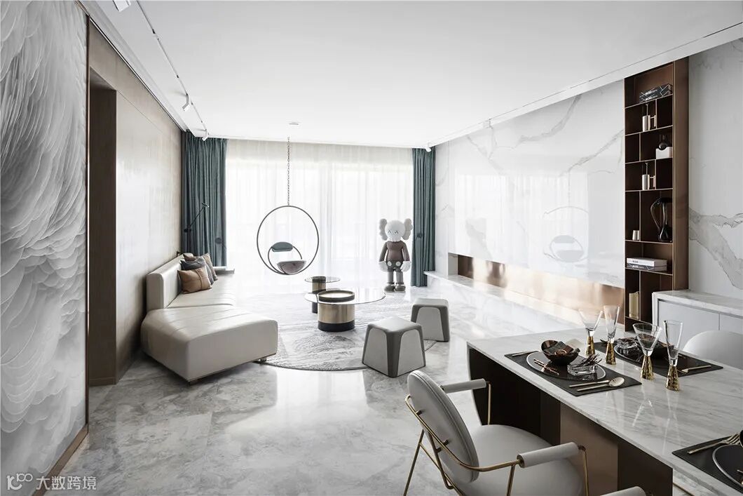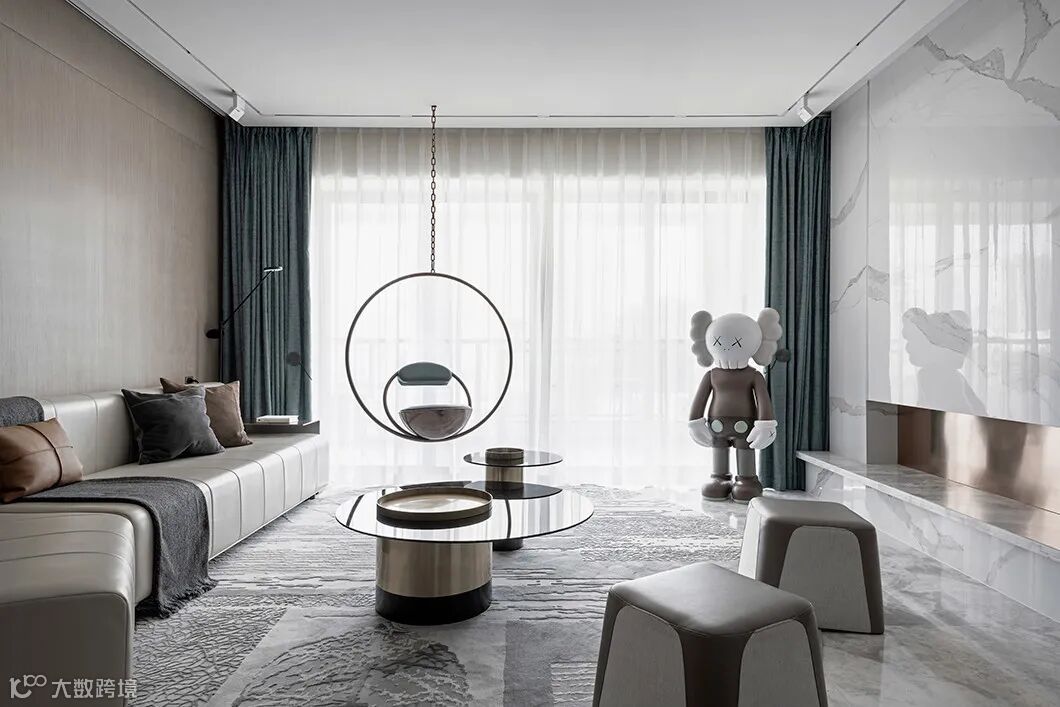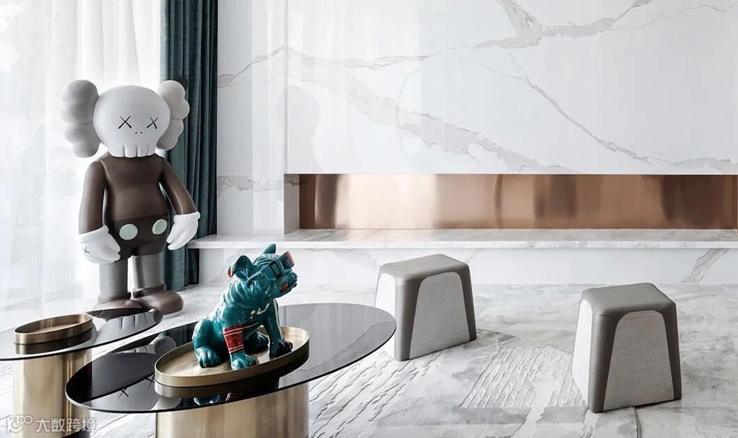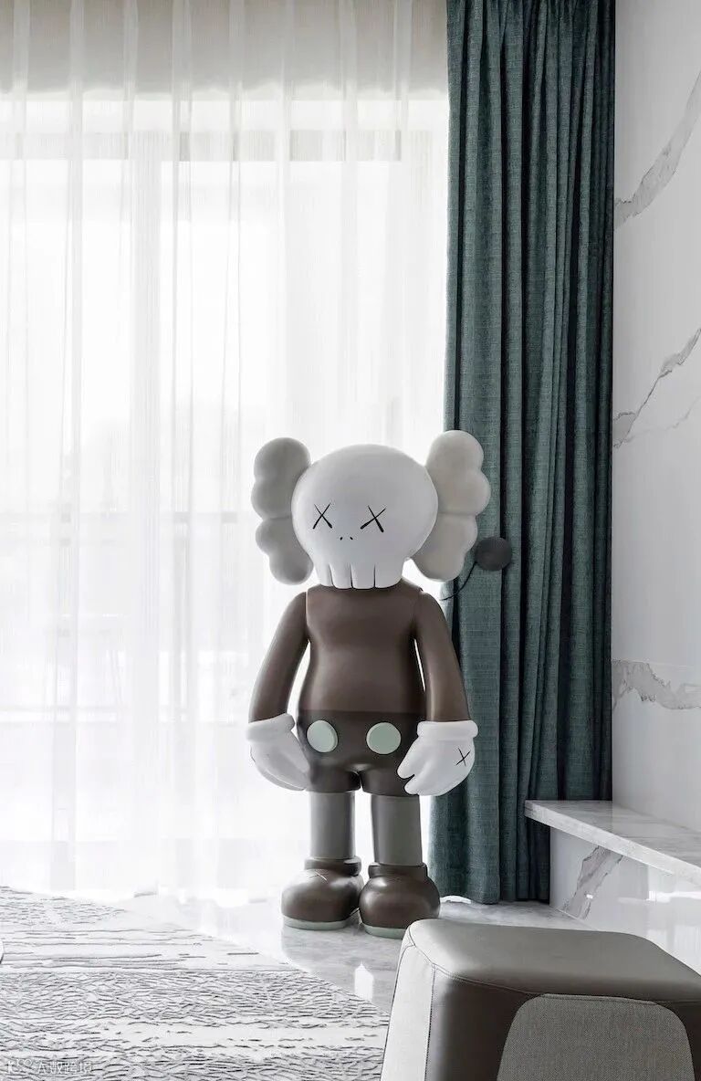 将湘江的波澜映入室内,呈现于进入卧室区域分割空间,给人以强烈的时尚感。KAWS创作的形象融合当下流行元素,有着浓厚的波普艺术的风格气息,以现代艺术的形式营造其独具标志性的风格。