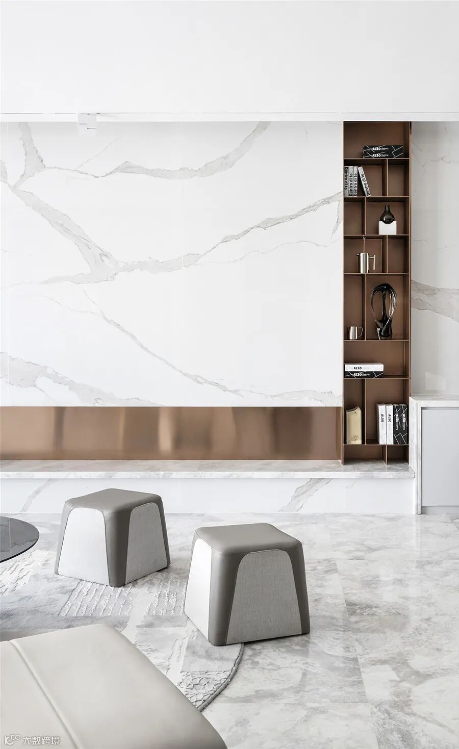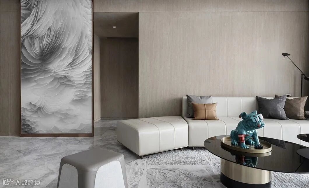 玄关的端景处采用超存在主义雕塑大师的作品,以某种独创手段标志出一个有形的空间。