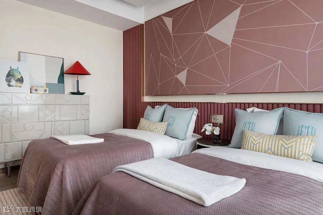 女孩房以抽象的星空为主题背景,融入自然清新的淡茜红,营造出细腻而活泼的情绪氛围。让这个空间里,色彩活泼但不杂乱,为相伴成长的童年创造一个梦幻温馨又舒适的环境。
