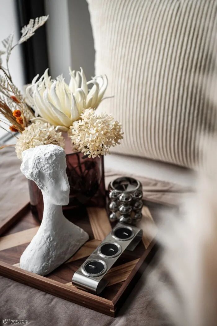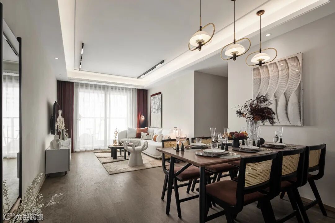空间整体模糊了具象的风格概念,让人步入空间之时,即刻感受到典雅的居住氛围,同时还有柔和舒适的亲近感。