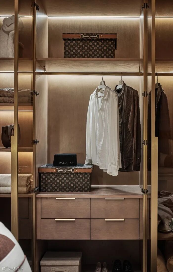 内嵌灯带除了有照明功能,还是绝佳的空间装饰,照亮珍藏的衣物、首饰、包包,大大提升空间精致感。