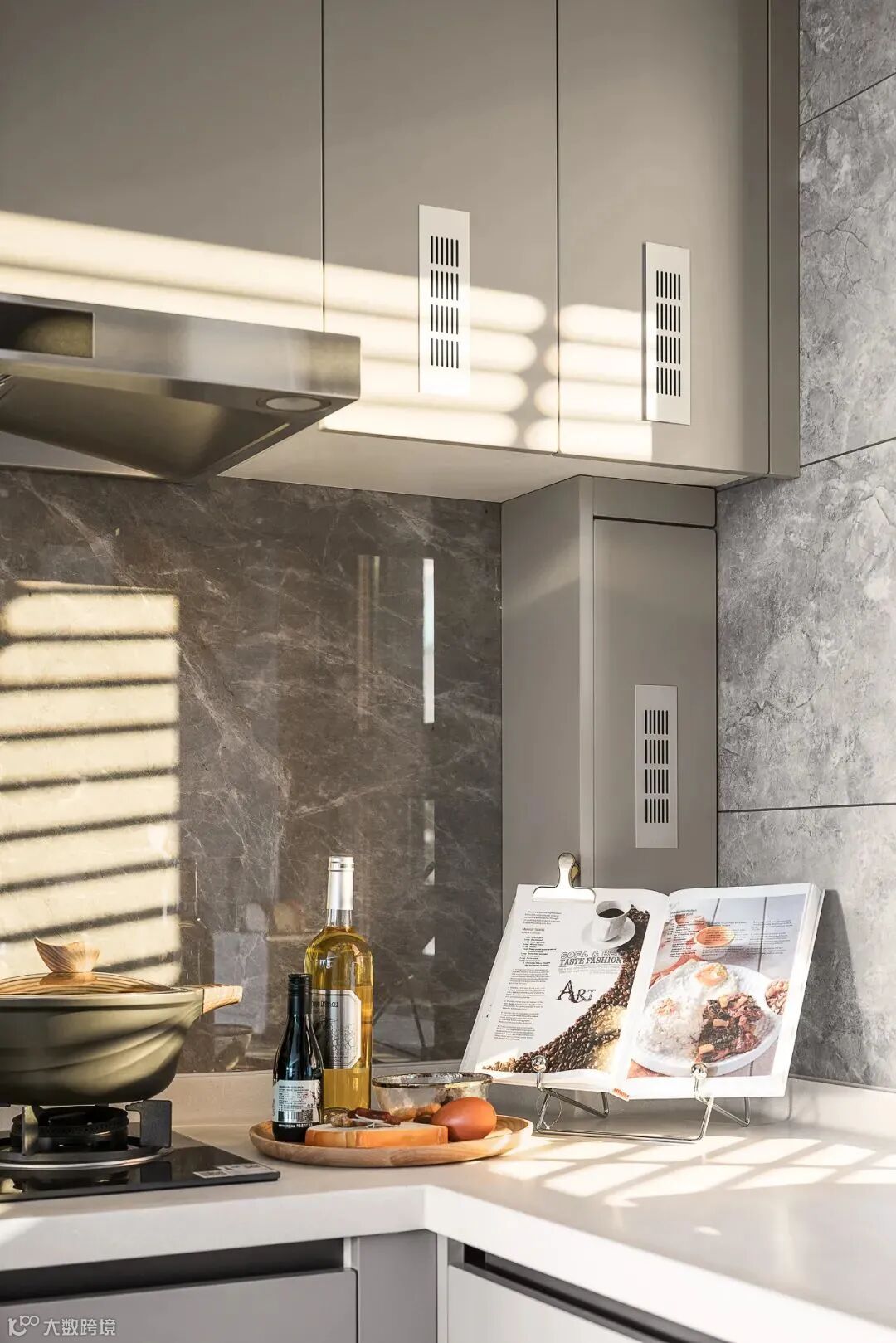 客厅以高级灰与米灰色系拉开序幕,舒缓的色彩搭配为空间加上一层柔和滤镜,磨平生活的浮躁,感受归家的舒适感。