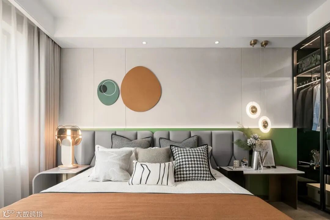 回归空间的本质,豆蔻绿和阳光橙延续到卧室,衔接出起伏有致的场域感。舒缓的配色随着空间流转,融入天然棉麻与织物之中,嵌进柔软蓬松的床品之上,律动多变且融洽,直抵高质人居的主线。