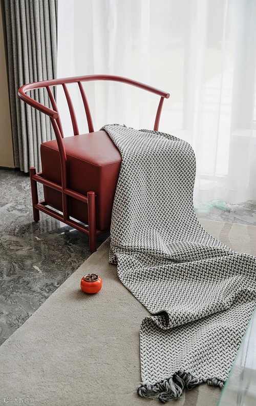 水波纹的茶几线条流畅,将东方特有的内敛雅致隐匿在细节中。