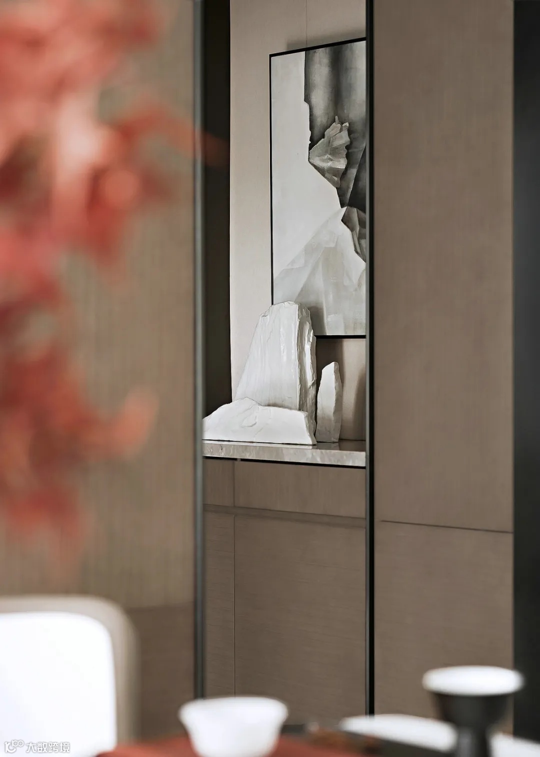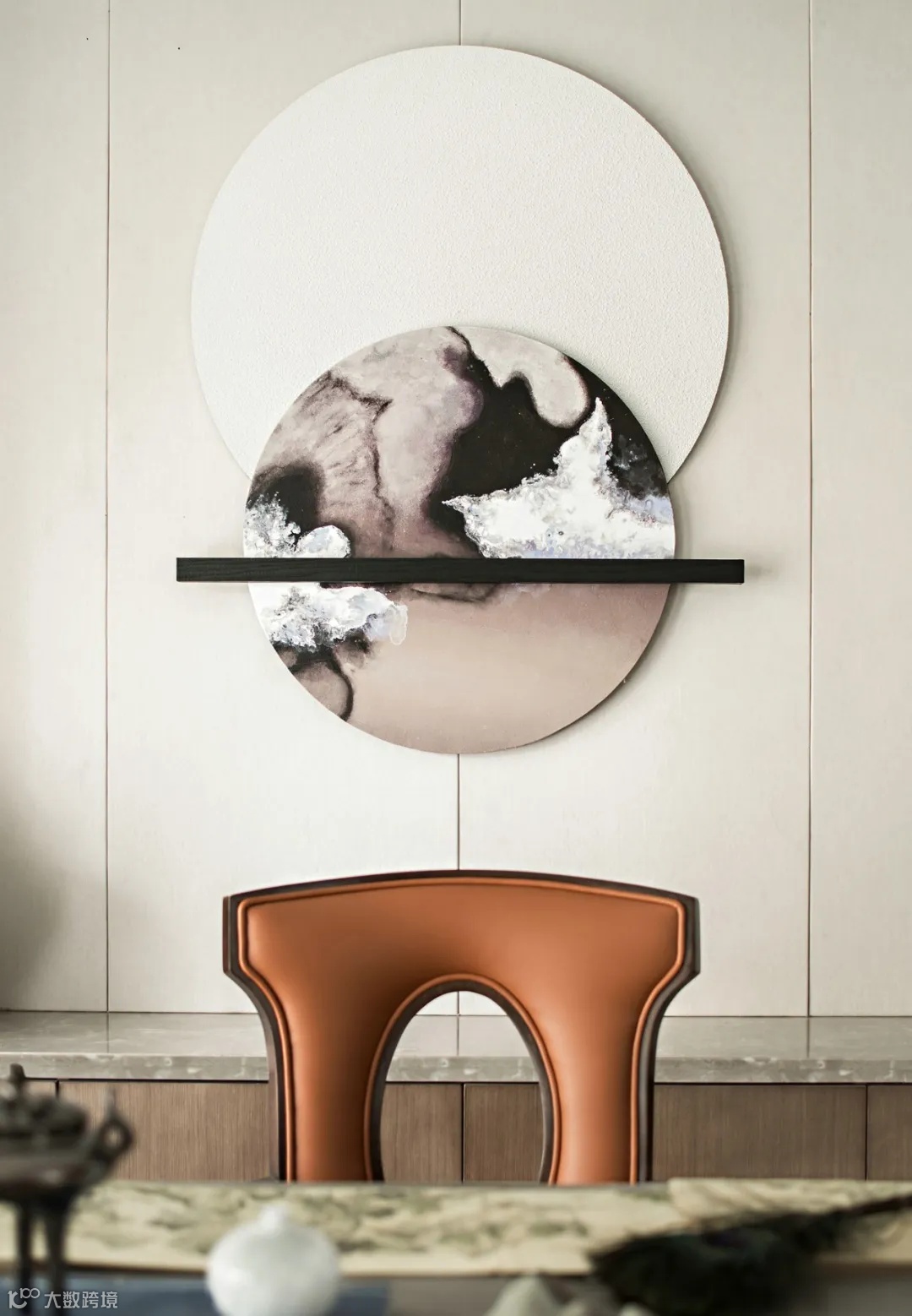 大理石、皮质、棉麻及金属元素的碰撞椅踏端庄,案几有序,器物风雅极具大宅之气雅致与内敛为基调彰显空间个性。