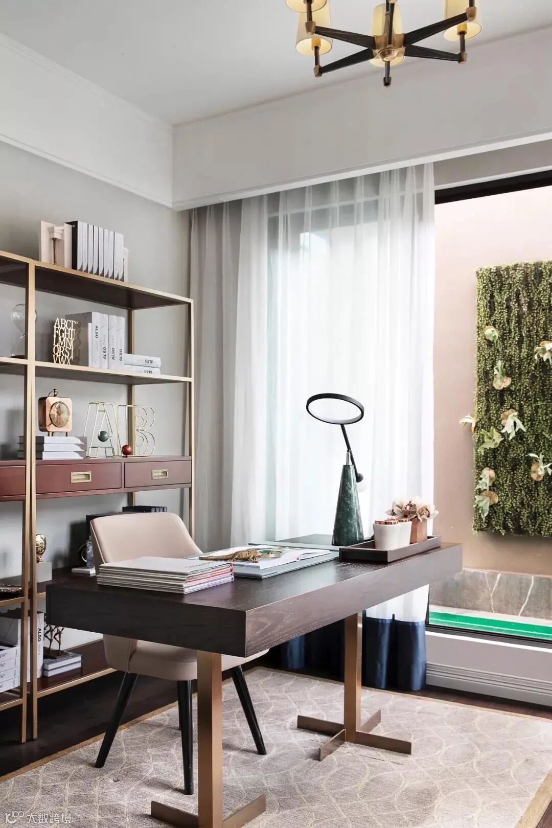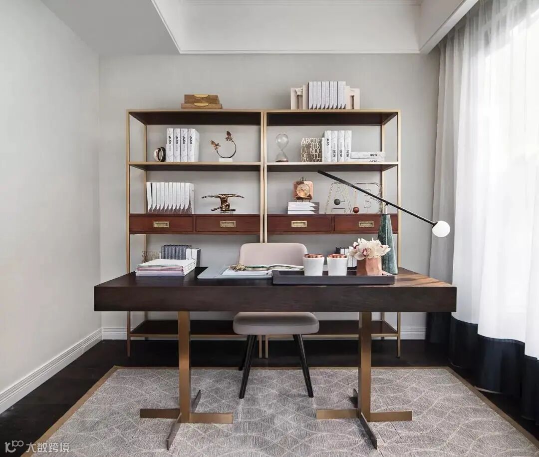书房简而不陋,一桌一椅一书架,其材质都是细心挑选,而富艺术性的装饰更是彰显着书房主人的非凡爱好。这一隅之地,是学习工作的场所,更是现代人灵魂洗净疲劳后的栖息之地。