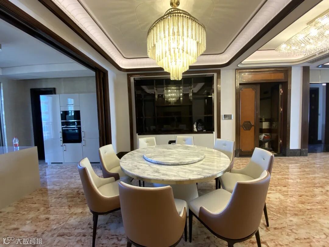 客餐厅双厅连接,并与开放式厨房关联,适合打造与如此大气的视野相辅相成的气派室内氛围,展现出优越的大宅生活图景。
