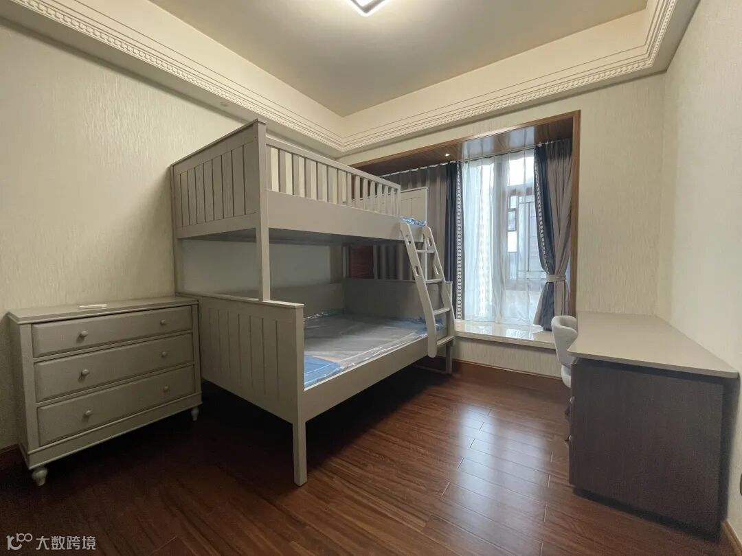 儿童房则采用了一体式上下床设计,以达到垂直空间的高效利用。在空间中打造休息区、学习区及储物区,让孩子们的生活井然有序。