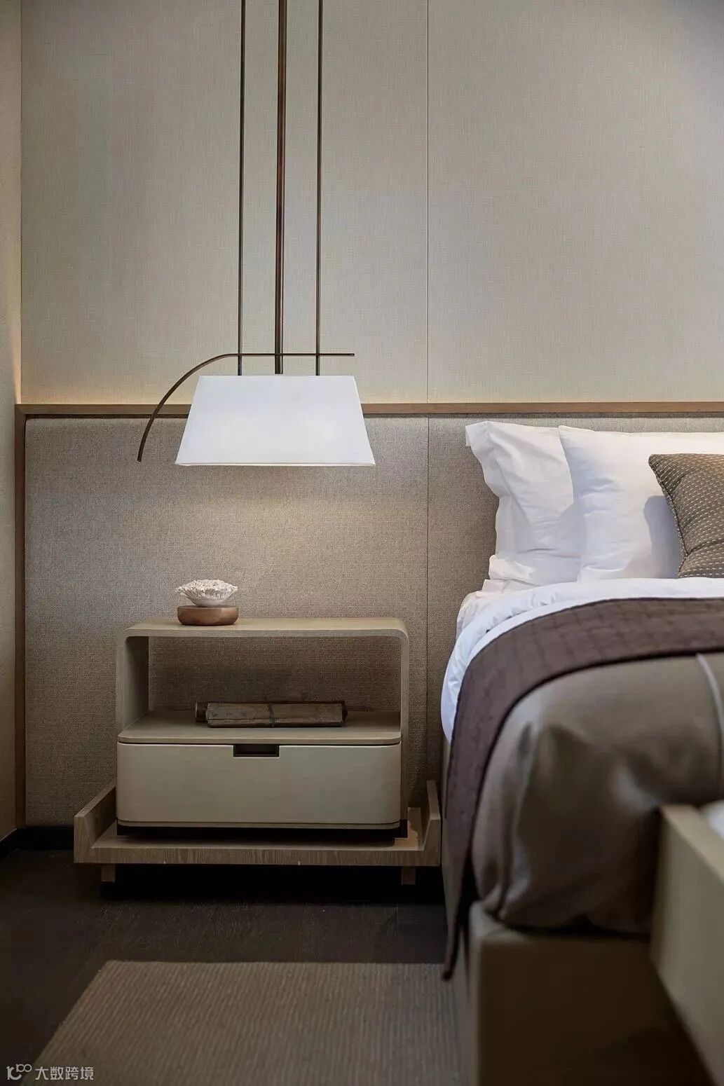 主卧依旧选用浅色原木家具,色彩柔和接近自然,空间强调色调的均衡,协调中丰富层次,在统一中求改变,又在改变中求统一。
