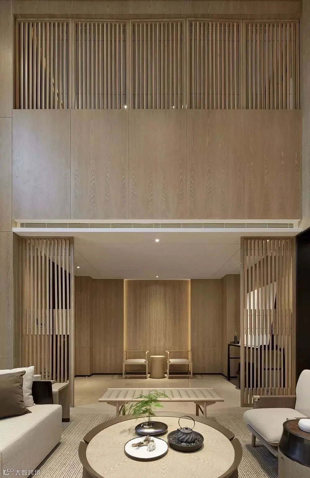 线性的原木色大量出现在会客厅中,显得空间舒适开阔、柔和明亮,直线的栅格与圆润的细节,让人不禁联想起竹林的意像,谦谦君子又温情脉脉。