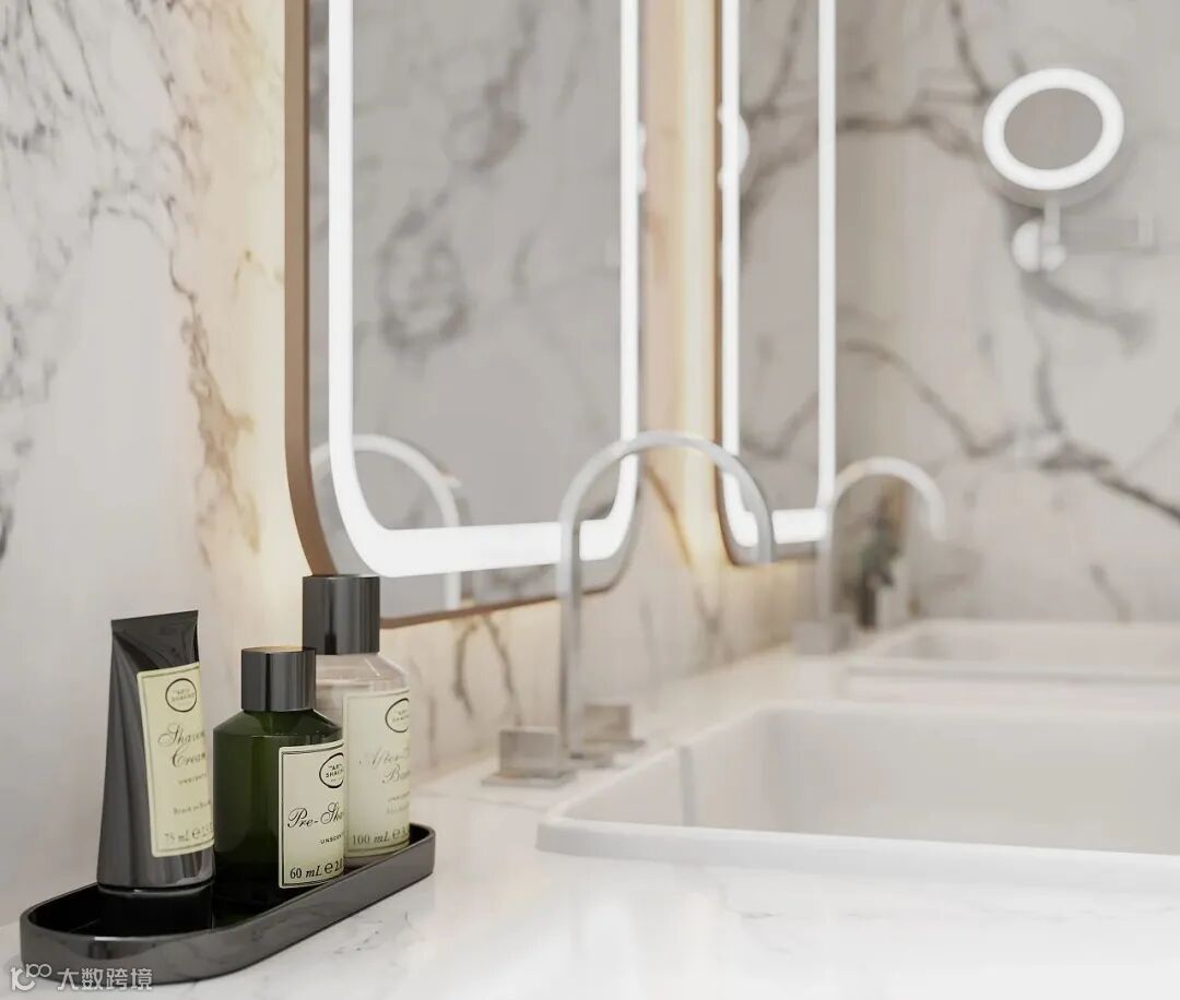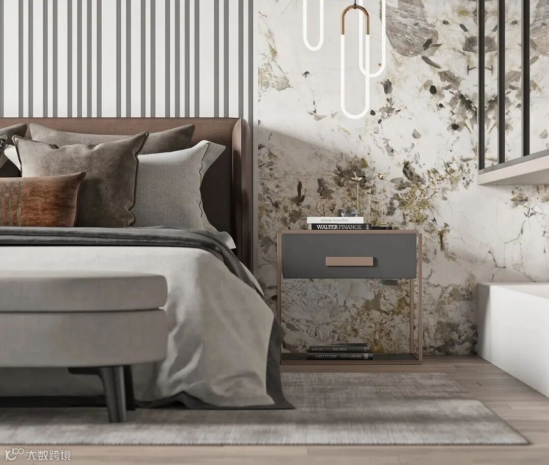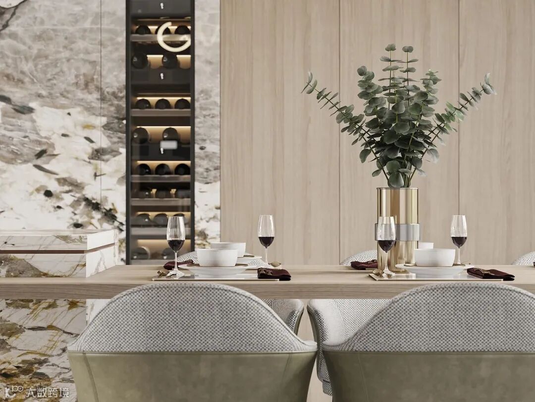 岛台及墙面大理石纹优雅的色调、精美的纹理