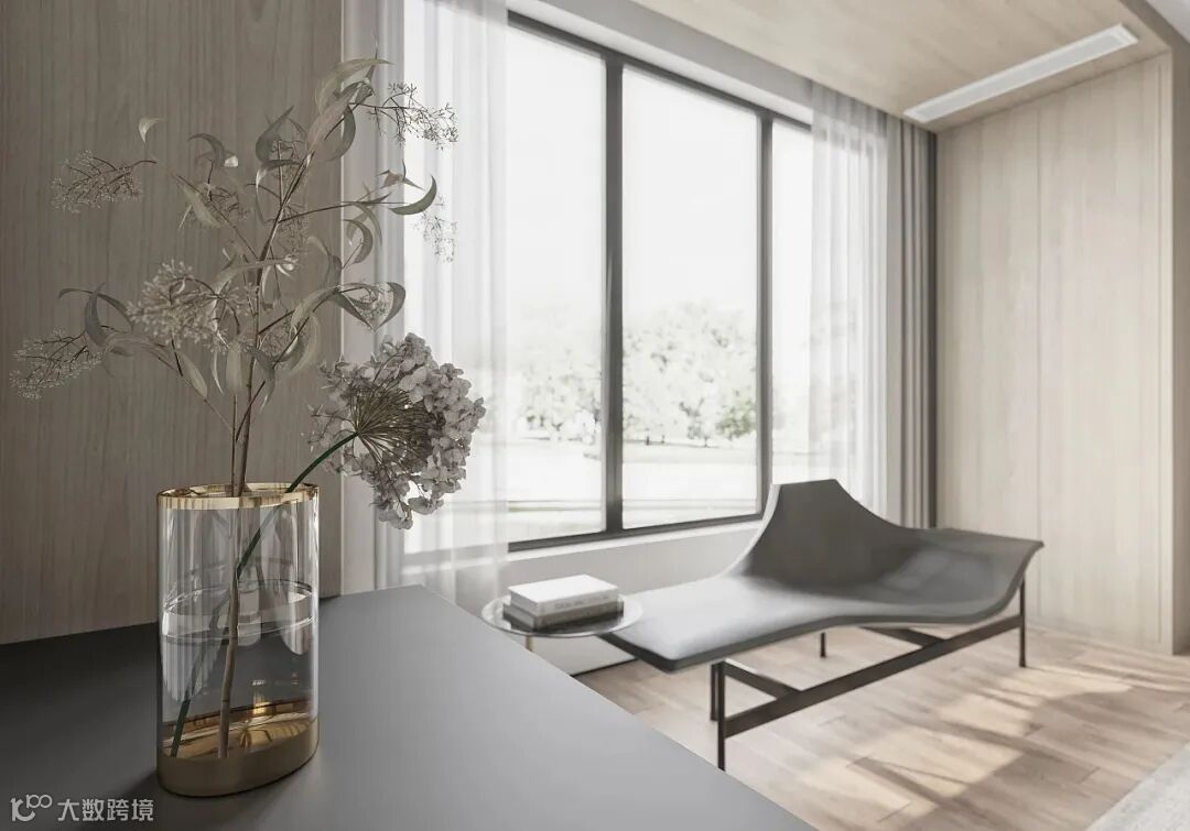 白色栅格木饰墙面呈现细腻宁静的休息空间
