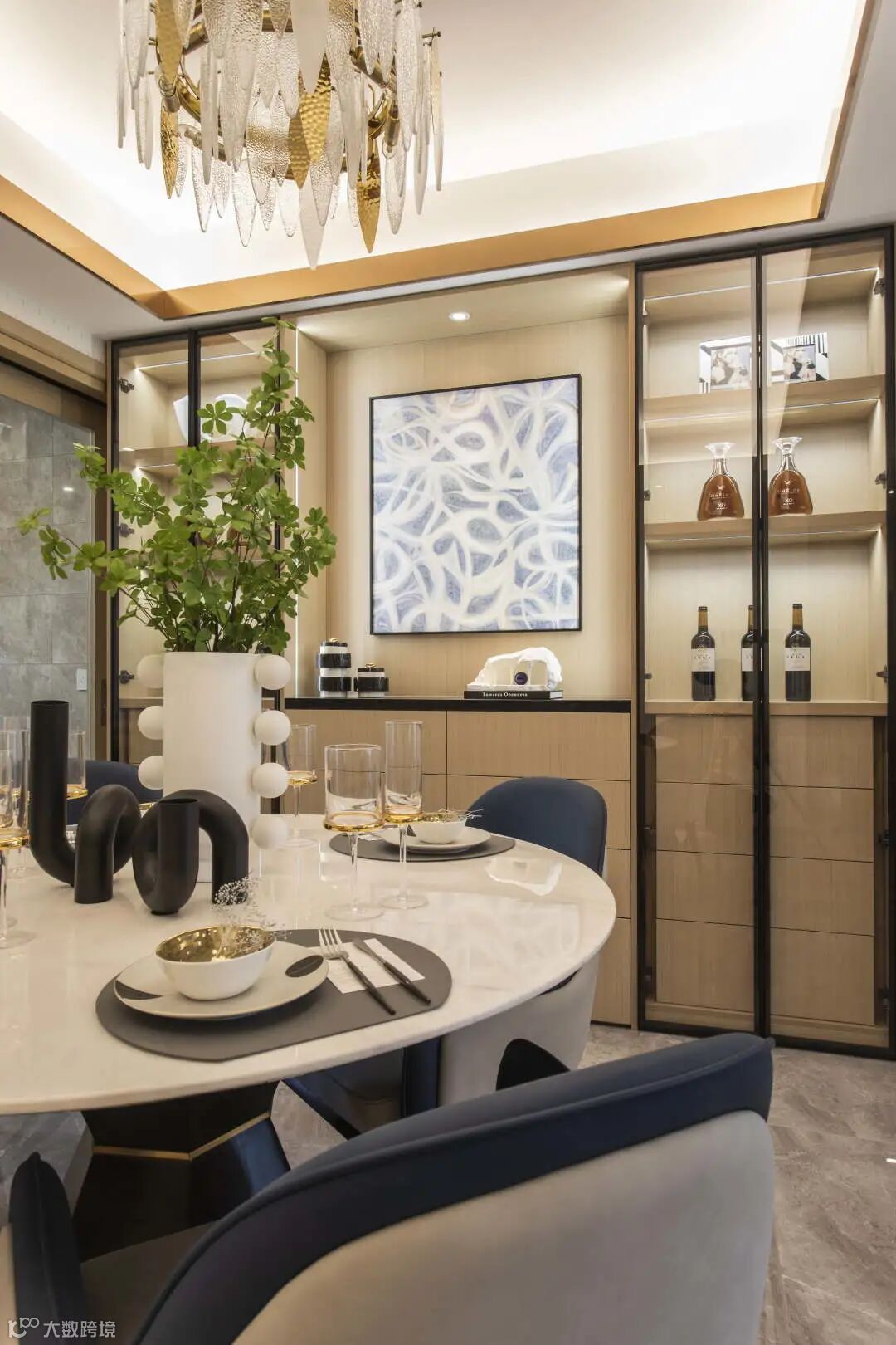 高级定制的餐具与桌椅、品味卓然的艺术品、璀璨晶莹的灯饰,充盈了细节上的独到之处,共同演绎现代美学生活的雅奢氛围。