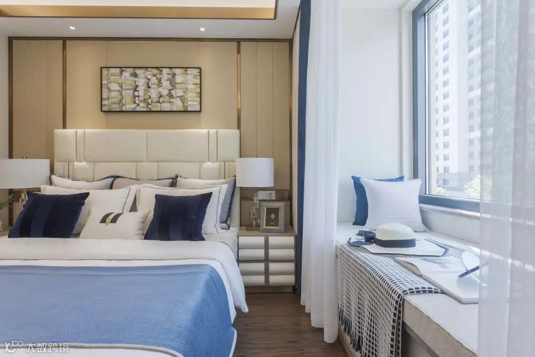 静谧蓝的复古点缀,尤显克制与低调,营造诗意化的布局效果,用艺术与空间设计共感衬托出休憩空间的舒适氛围,提供一个新颖的审美视野,升华了生活意趣的体验深度。