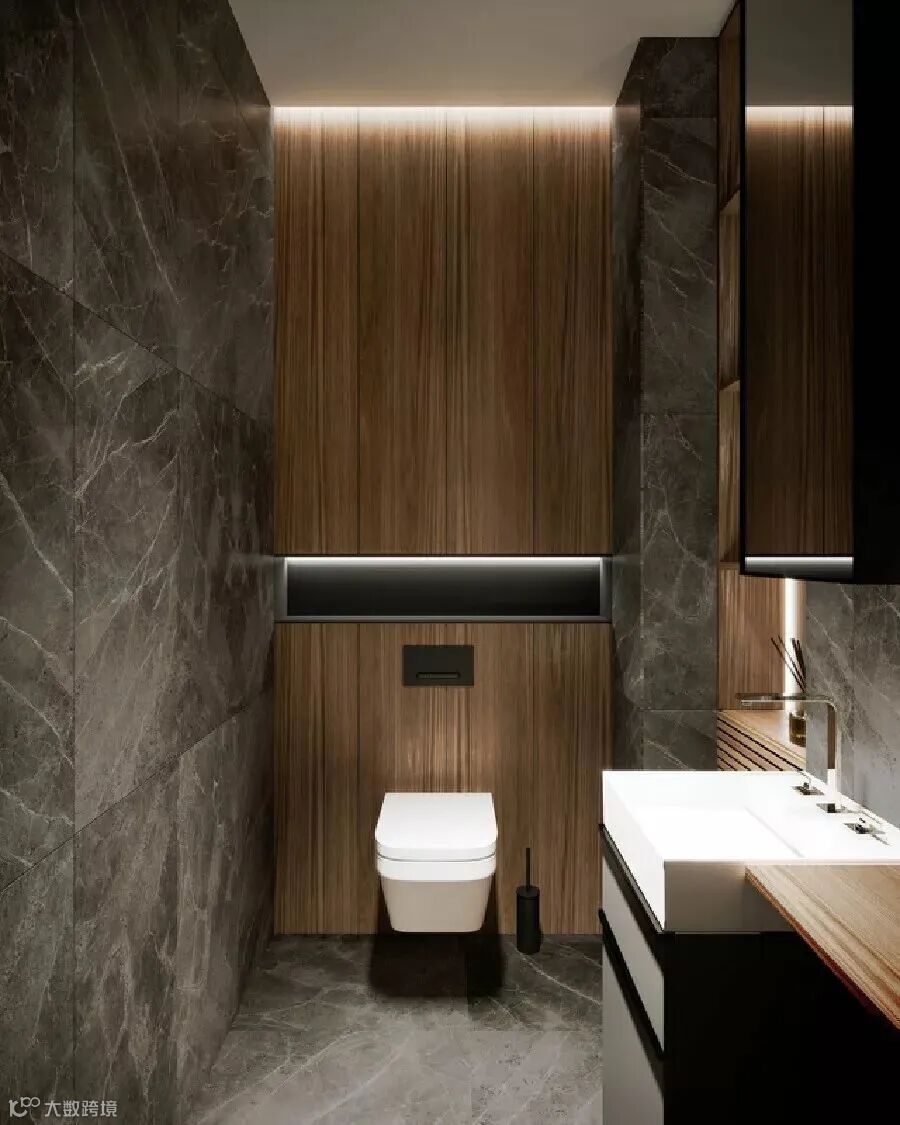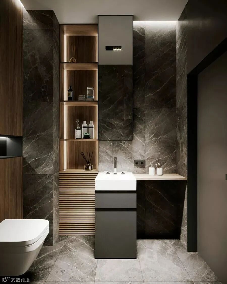 沐浴区的大格黑框玻璃隔断也让卫生间秒变精致