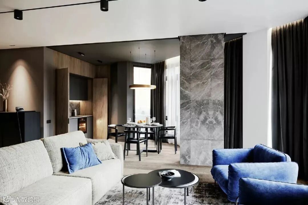 雅灰大理石台面的餐桌搭配黑色简约造型餐椅