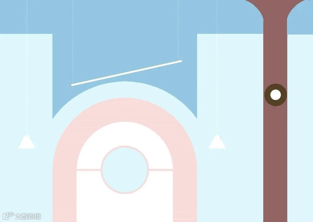 ▍ 使用高度对称的圆弧形、点线面为主的元素