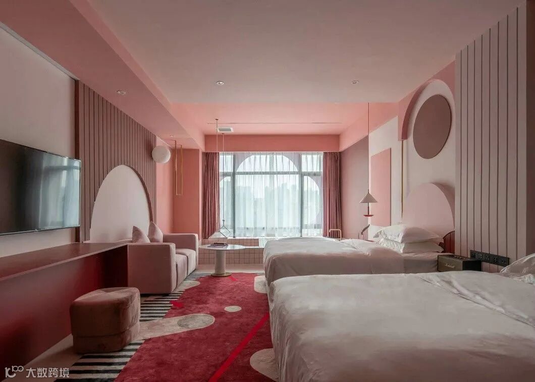 ▍ 在空间配色上采用六种深浅不一的红色进行协调搭配