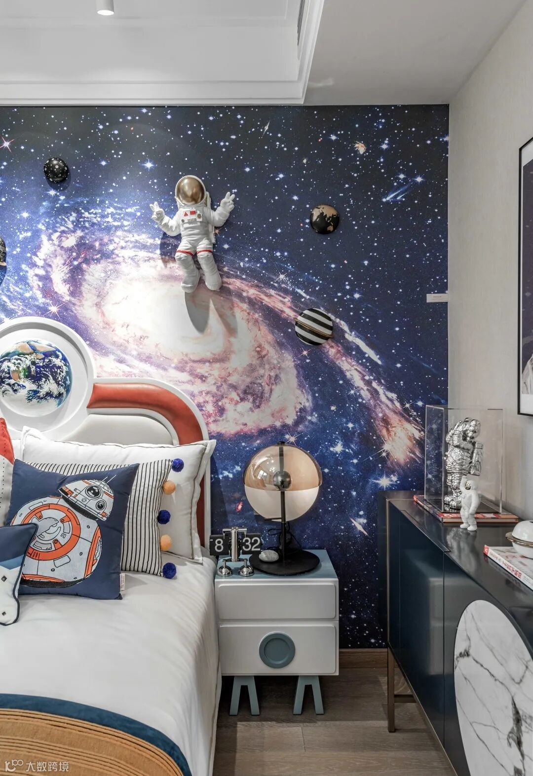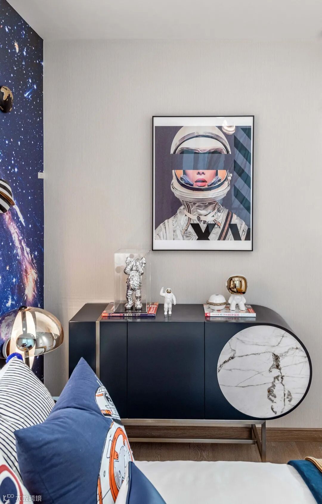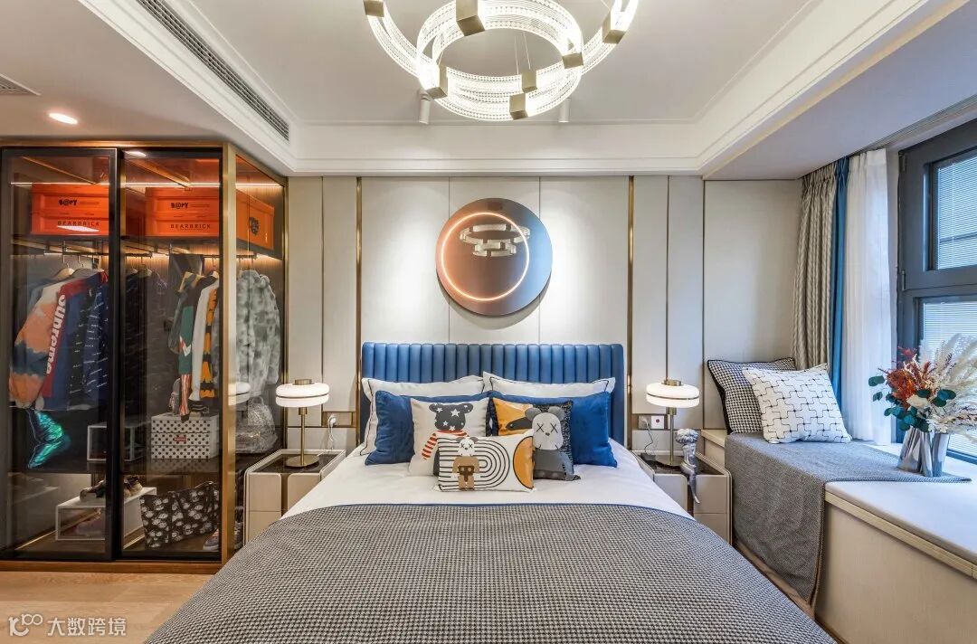 主卧表面波澜不惊,细节之处尽显潮玩态度。在设计中揉入个性化主题,让前卫玩趣的风格调和成年轻人对家的独特印记,同时为空间创造出能量与活力。