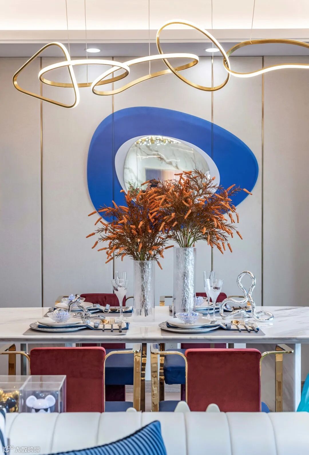 开放式的客餐厅设计只为取悦自我,通过色彩与元素的混搭与冲撞来彰显个性的活力。使得整个空间连贯又更显层次。“蓝"代表了天空和海洋,“红”则代表了太阳和令人激动人心的事情。在空间氛围的延续中得以充分自洽,随性且从容。
