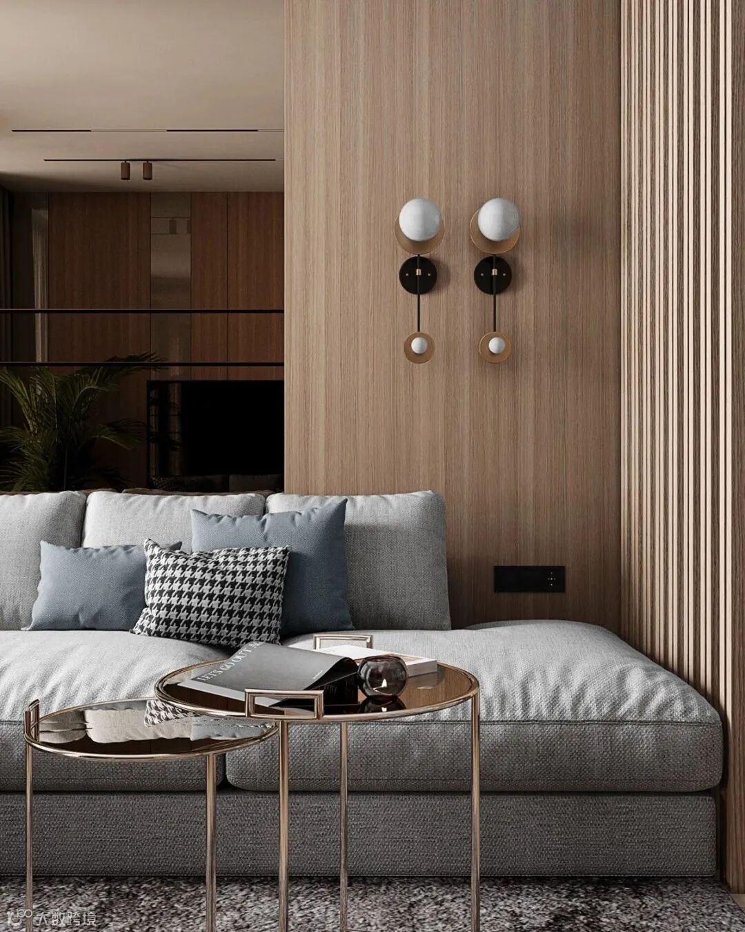 木质与黄铜的优雅在恬静灰调中轻盈勾勒