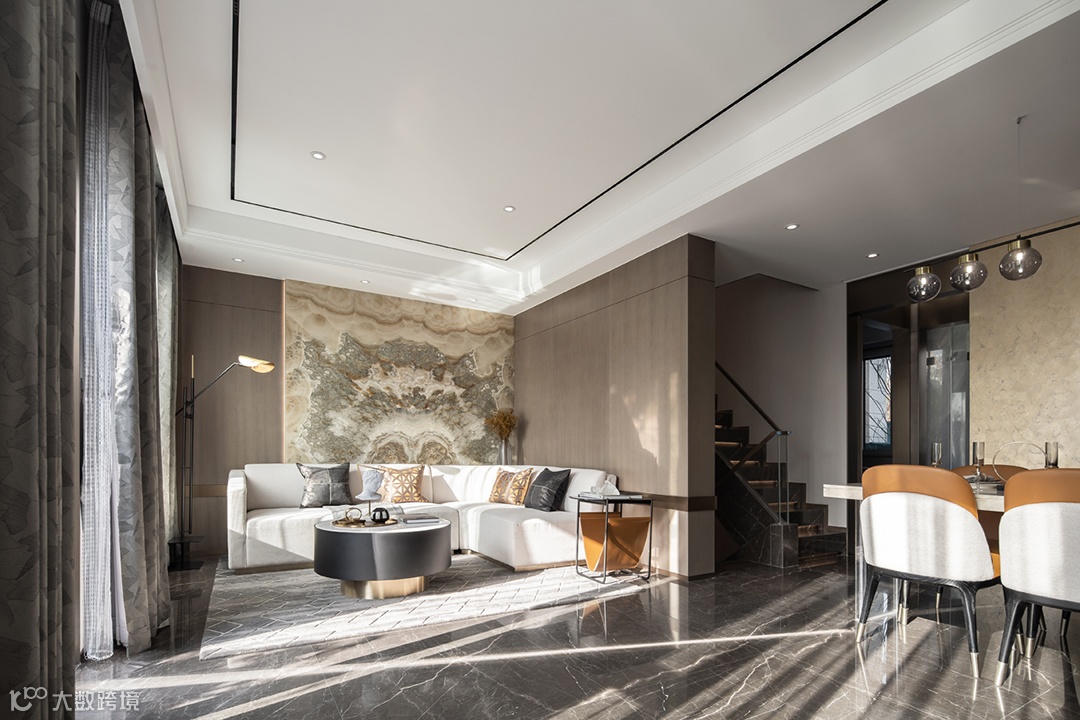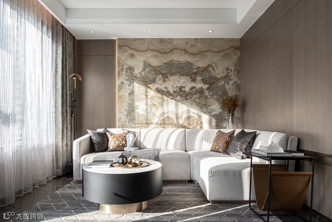 ▍ 客厅背景大花纹石材温润如泽