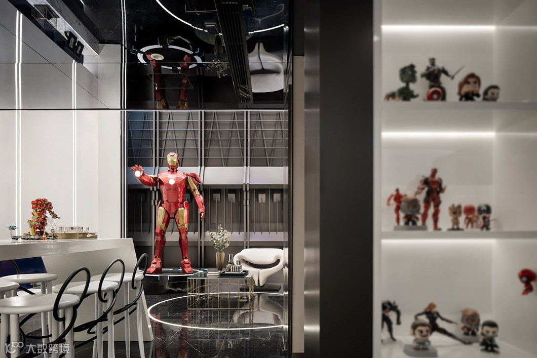 ▍ 空间以金属、皮革的中性色调为主