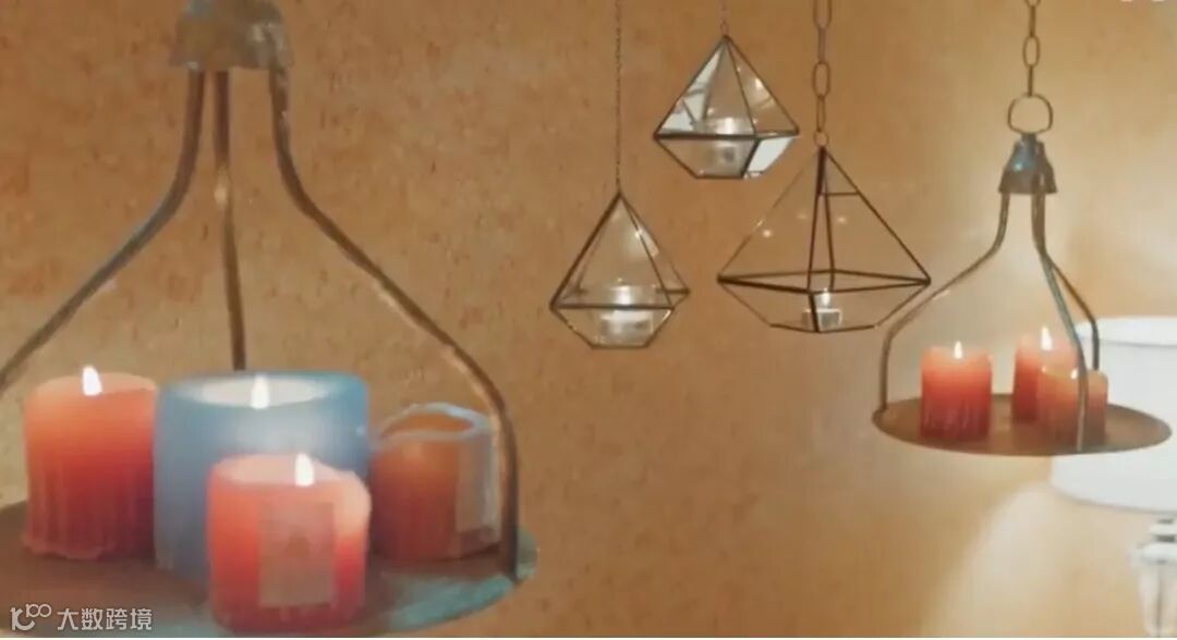 床头的马克龙色系的蜡烛小吊灯,搭配以极具艺术感的铁艺托盘,浪漫细腻,唯美造作得很有分寸。