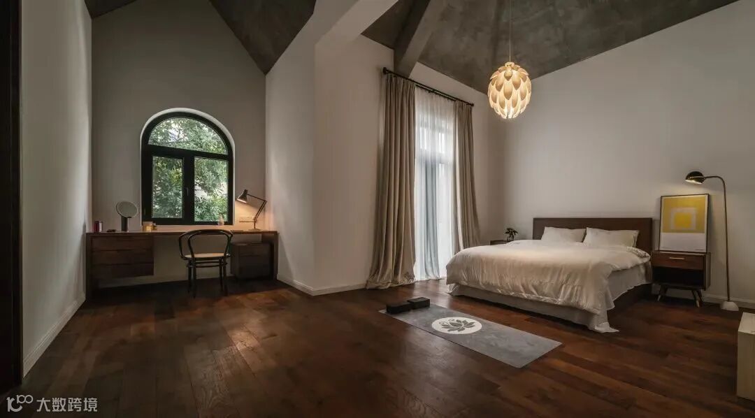 原始天花结构独特,没有吊顶特意保留原始梁,带有独特的空间感。