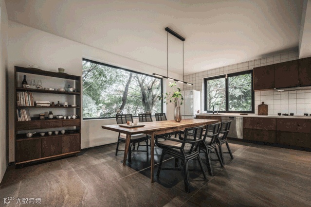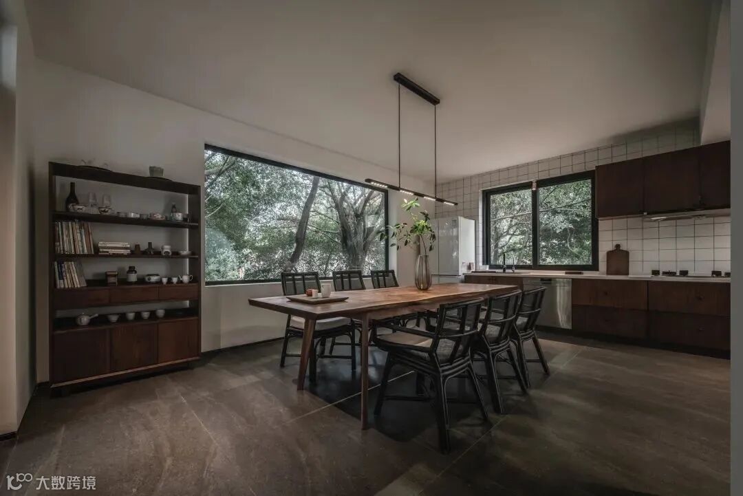 晴天,雨天,清晨,傍晚,光影会给这个空间铺上不同的情绪,室内的氛围和窗外的成片树荫,让人有一种住在森林的错觉。