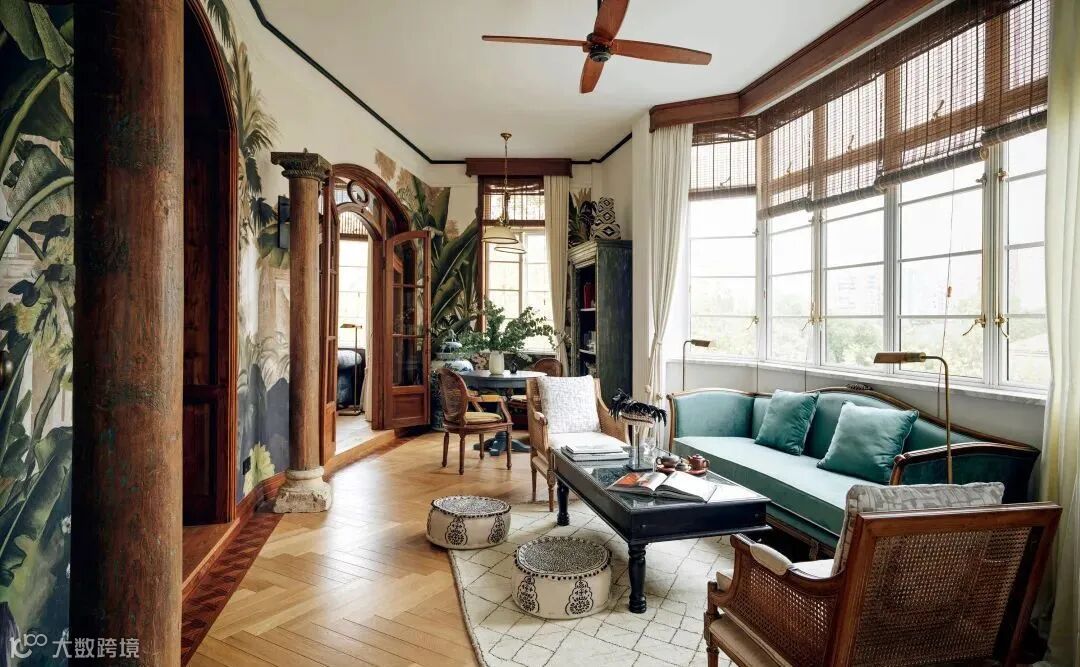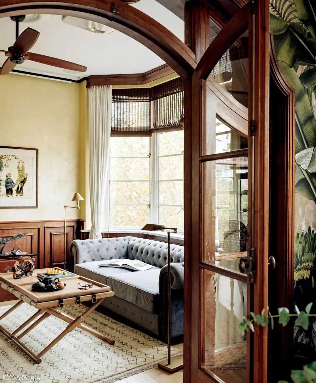 起居室里交杂着不同地域的装饰元素,但总离不开热带与自然,拼花地板和对开式木门皆效仿1920年代的样式,双层玻璃窗也是按照原装比例定制的。