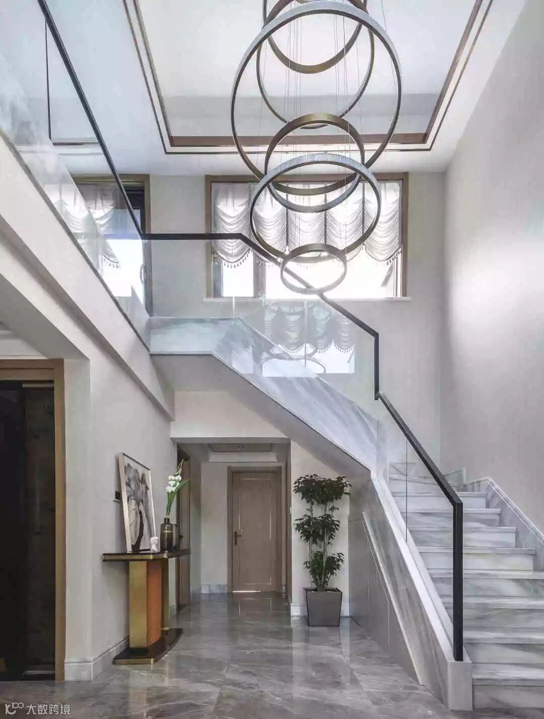 楼梯是连接上下层的过渡地带,既可增加空间拉伸感,又可以增加空间轻奢感,瞬间让此处呈现一种空间的造型艺术。