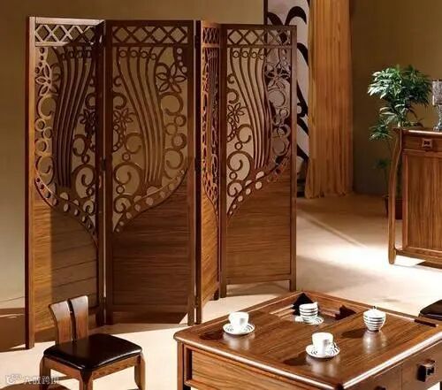 在以木质家具为主的空间里,选择栗色、淡黄色的屏风较为妥当。