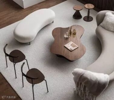 相较于横平竖直的理性和刚直,带有弧度的曲线家具更能满足人们对家的情感诉求,能给人带来温暖与柔和的体验。
