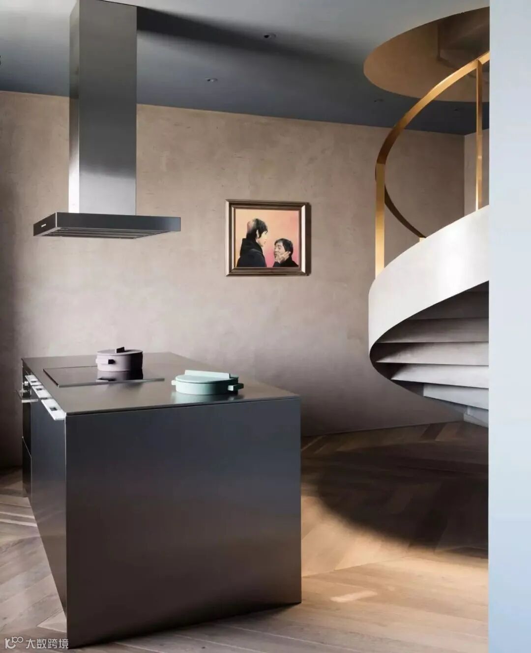 旋转楼梯和天光的设计别出心裁,充满艺术巧思,让人眼前一亮。
