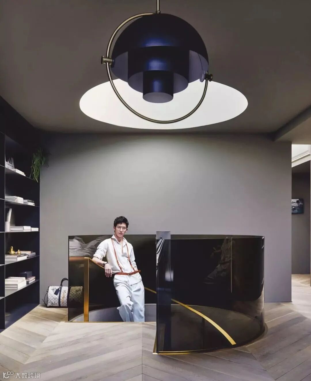 茶色玻璃与金色扶手软化了工业风的硬朗与冷静,使二层私人空间显得更加柔和。