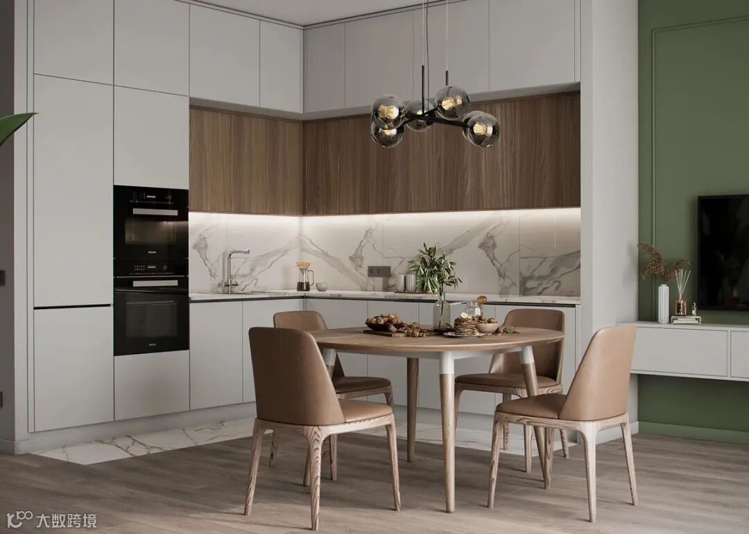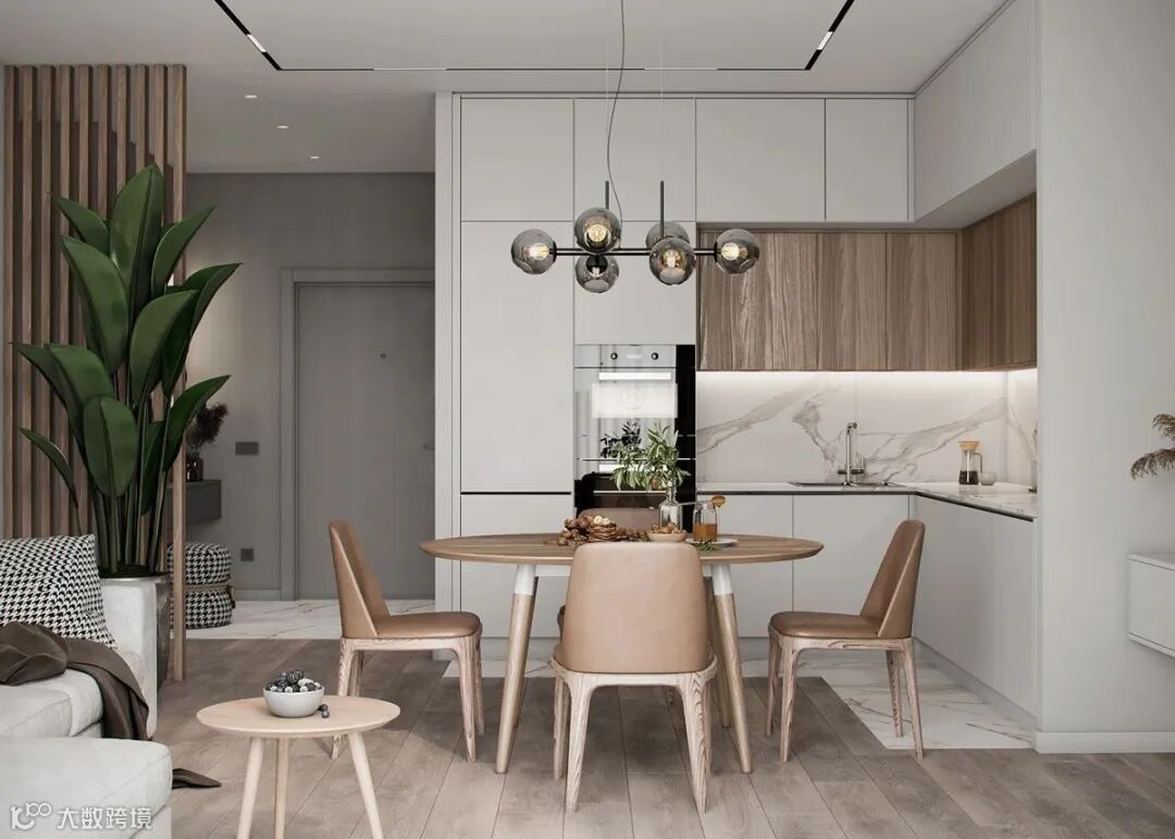 白色与木色橱柜拼接