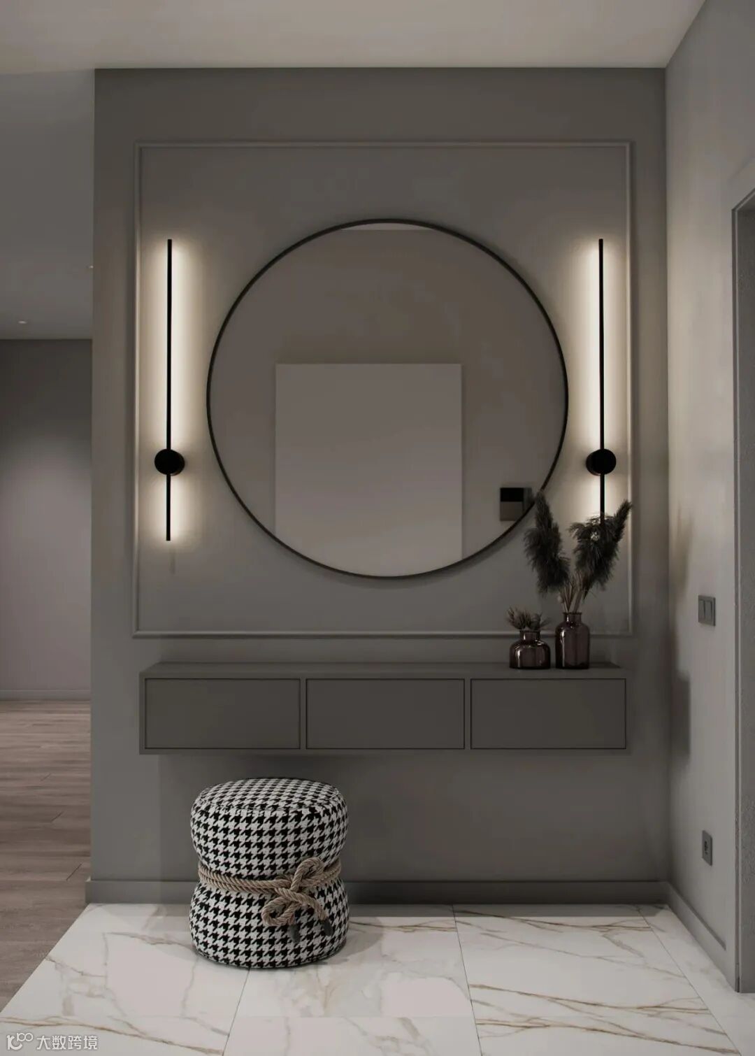 以灰、黑为主色调的现代轻奢玄关