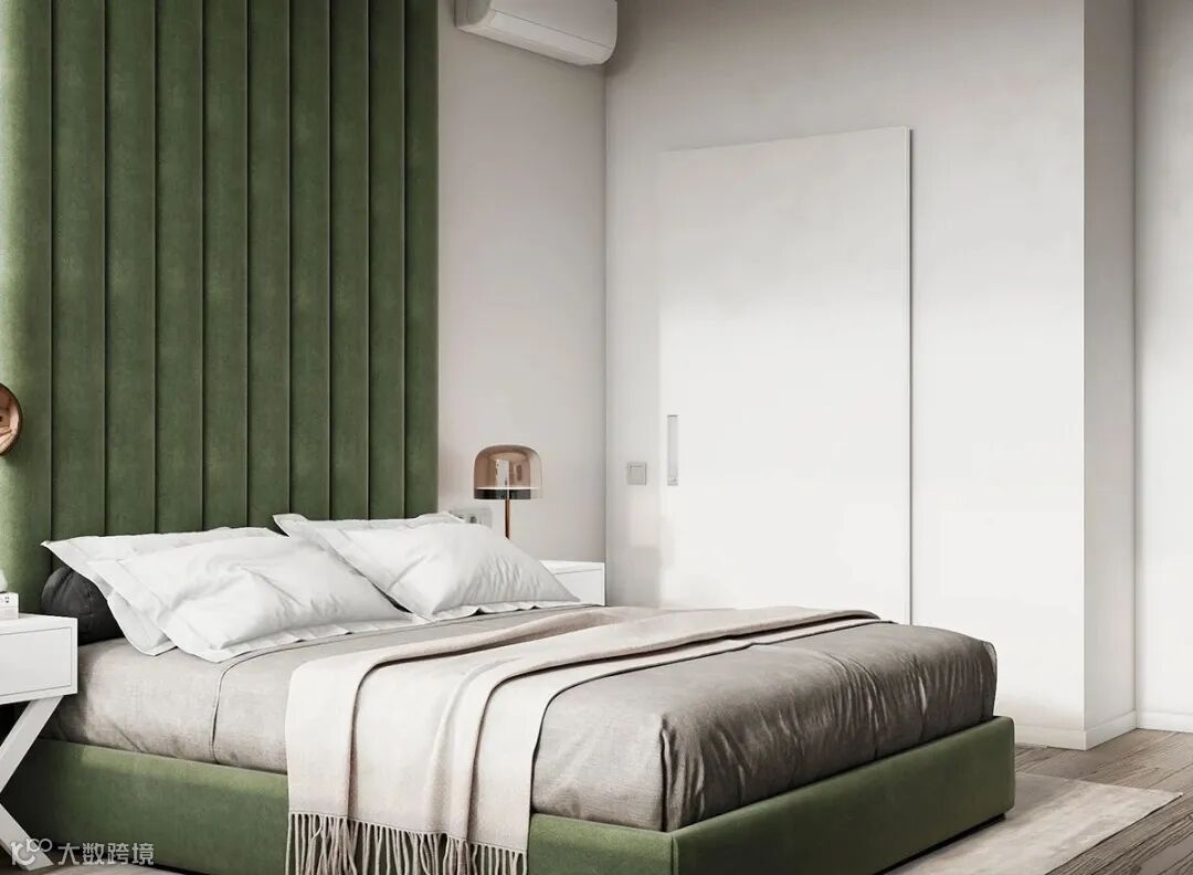 明快的绿色大床摆在卧室中央