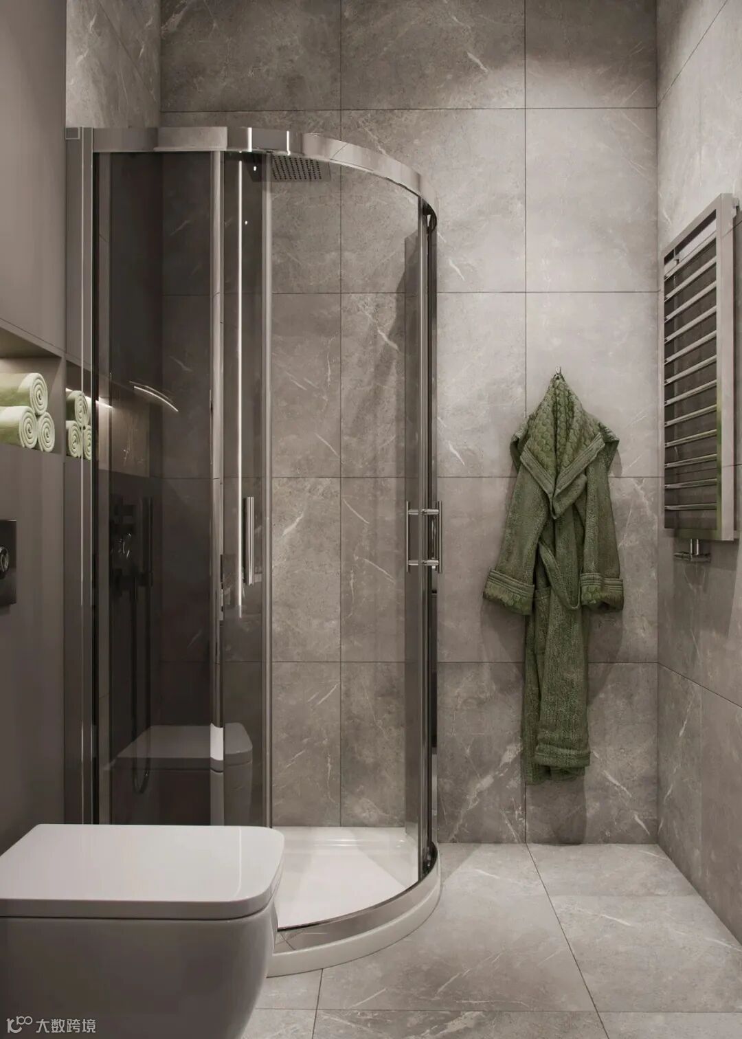 在以灰色为主的卫生间空间中