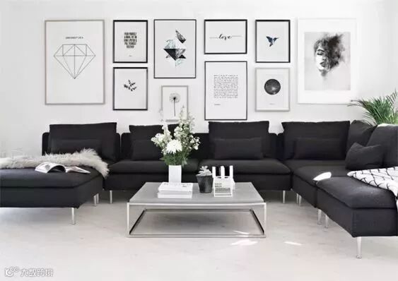 4、水平线挂法: 下水平线齐平的做法,随意感较强。照片最好表达同一主题,并采用统一样式和颜色的画框,整体装饰效果更好。