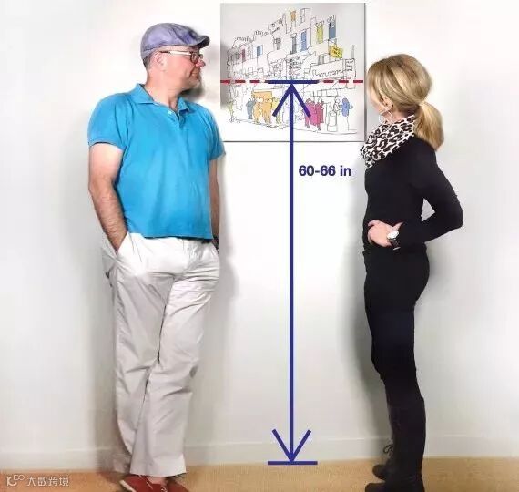 除此之外,还应该注意,挂画的中心点要略高于人平视的视平线。
