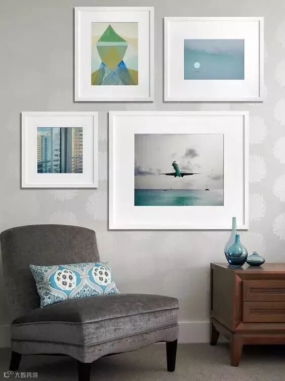 如果你不喜欢只用一幅画的形式,那么在多幅画陈列的时候,一定要注意它们之间的相互协作、搭配起来的效果。